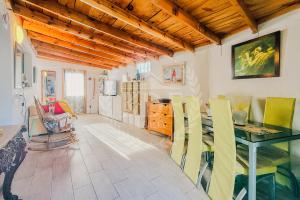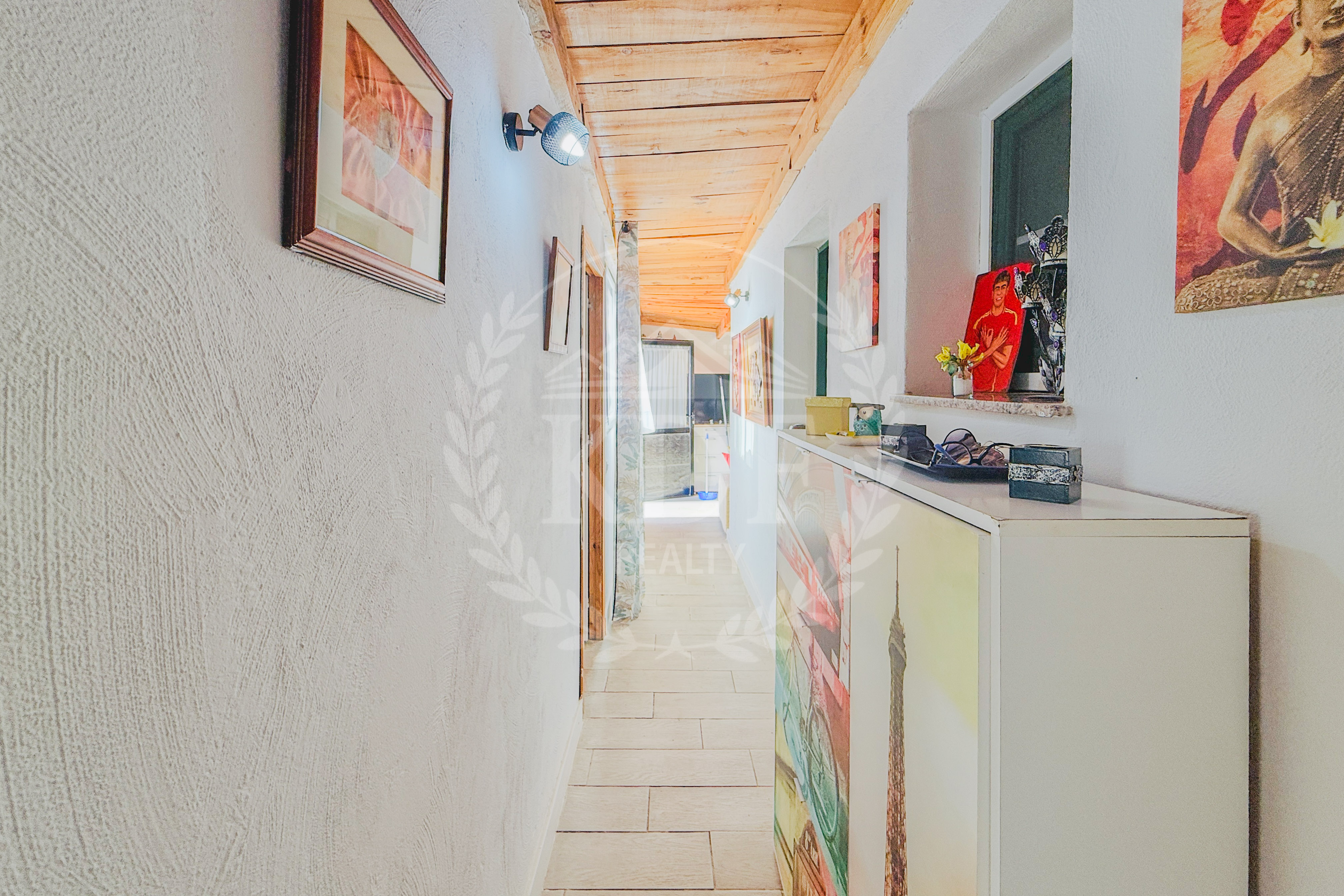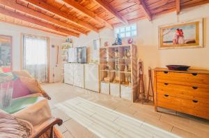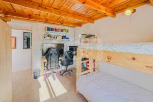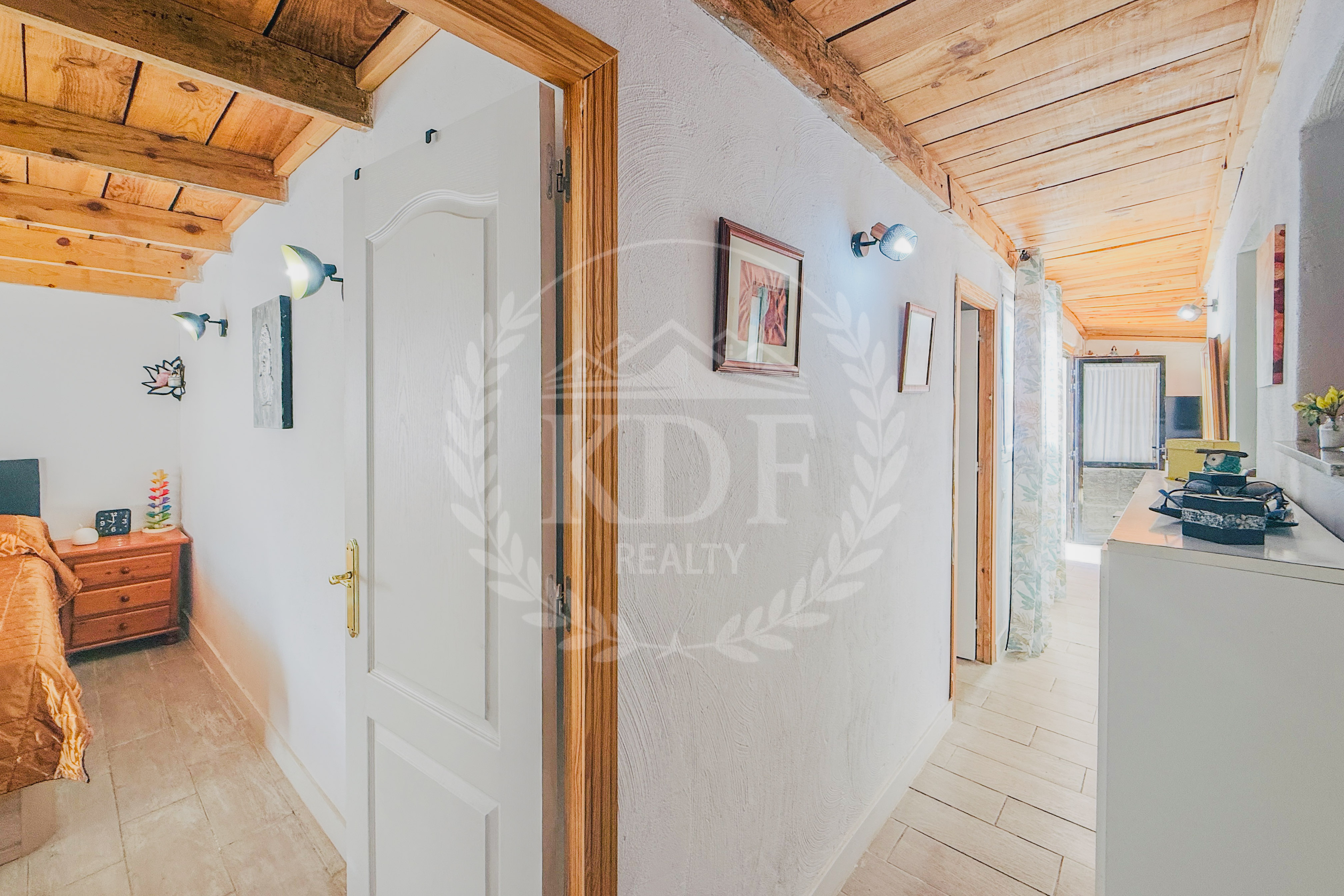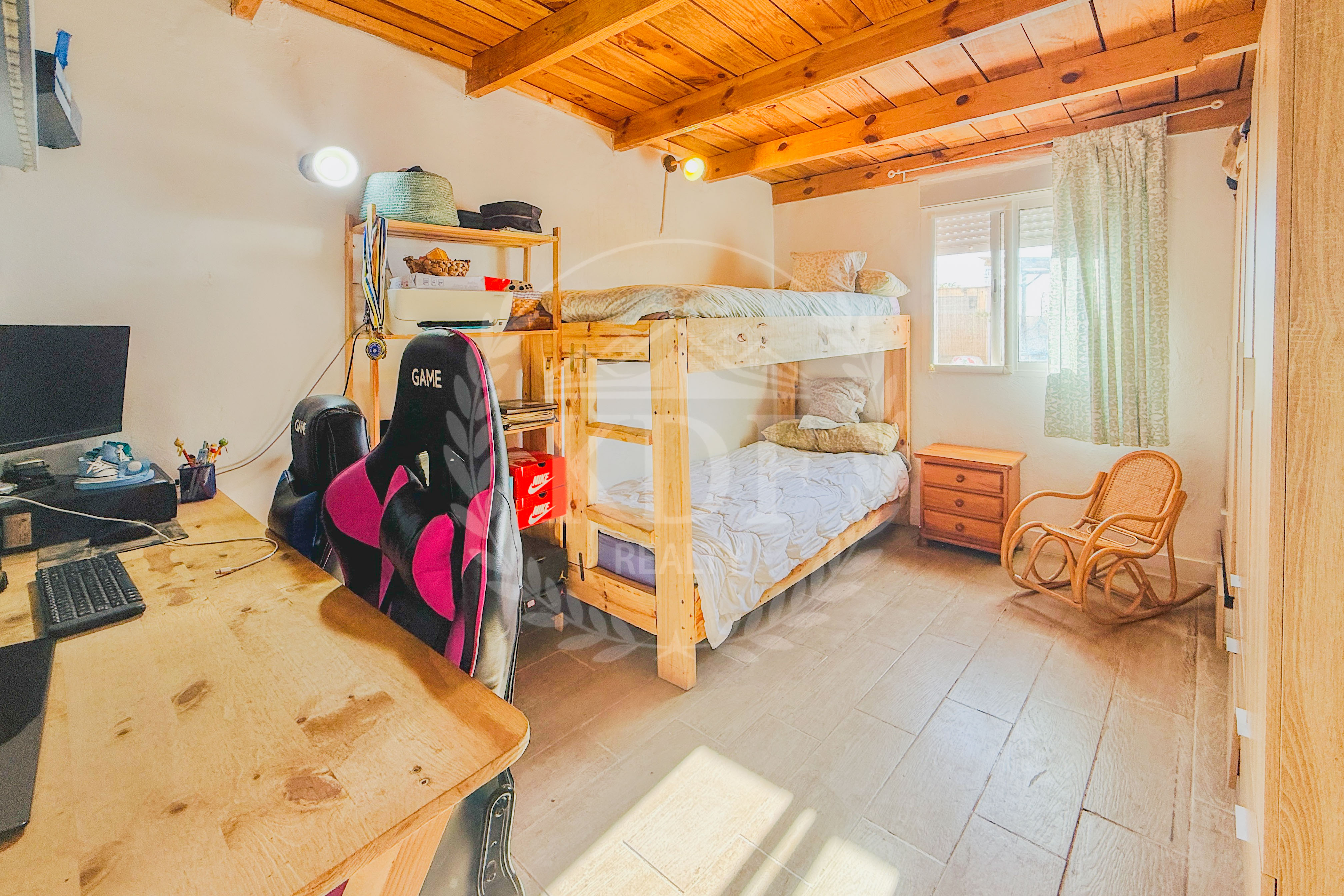 Los techos de madera en el salón y los dormitorios le otorgan un estilo tradicional y acogedor, combinando el encanto rústico con las comodidades de un hogar moderno.
