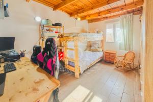 La vivienda principal cuenta con 130 m² construidos, distribuidos en tres amplios dormitorios, dos baños completos, un salón-comedor luminoso con techos de madera que aportan calidez y carácter, y una cocina funcional y cómoda. Además, dispone de un patio o terraza exterior, perfecta para disfrutar del aire libre o celebrar reuniones familiares.