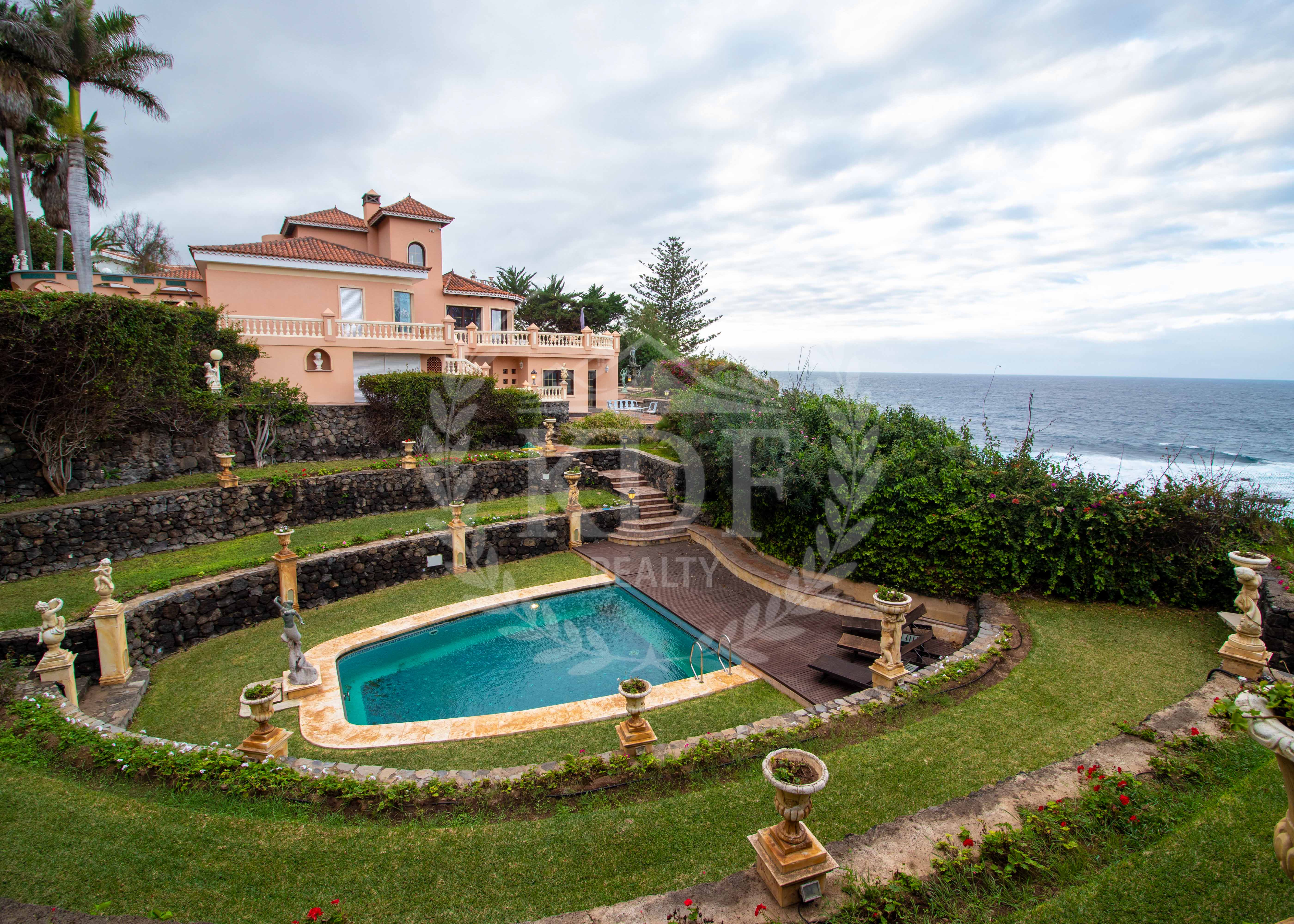 KDF Realty presenta esta exclusiva villa de lujo situada sobre un impresionante acantilado en la costa de Los Realejos, un enclave privilegiado del norte de la isla conocido por su naturaleza imponente, su tranquilidad y sus espectaculares vistas al Atlántico. La zona destaca por su privacidad, su clima agradable durante todo el año y su proximidad a emblemáticos espacios naturales como la Rambla de Castro y el mirador de San Pedro.